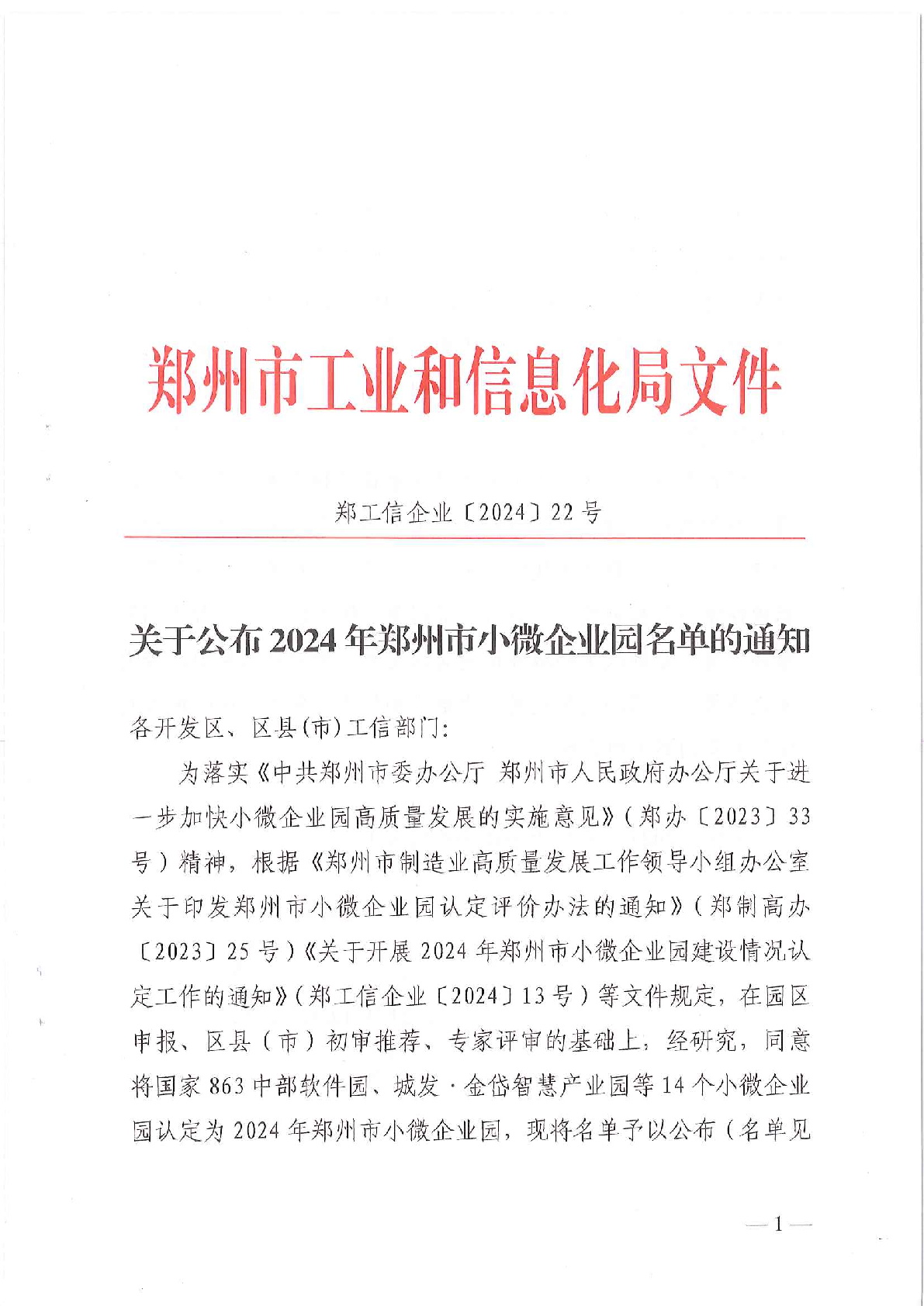 12月31日,郑州市工业和信息化局公布了2024年郑州市小微企业园名单,我校大学生创业园(大学科技园)被认定为“郑州市小微企业园”。