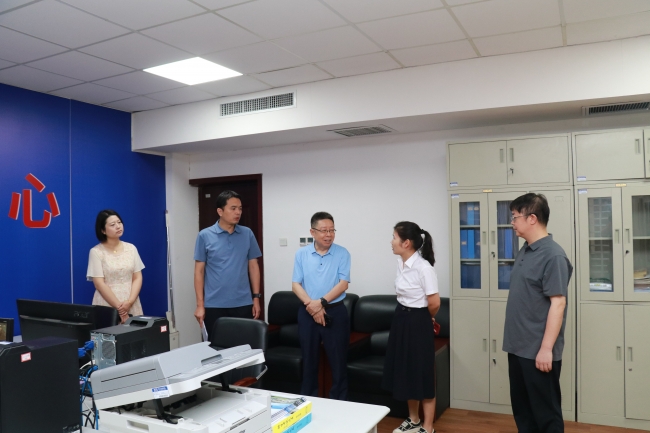 7月18日上午,校党委书记马治军在党委办公室主任乔谷阳的陪同下,到总值班室、学生宿舍、招生办公室检查指导暑期重点工作。