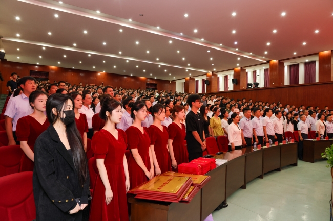 表彰会前,艺术教学部的老师们带来豫剧《花木兰》选段、京剧《梨花颂》、歌曲《我和我的祖国》等精彩演唱。开场视频《弘扬教育家精神 勇担新时代使命》展现了过去一年里郑财教师躬耕教坛、倾心育人,充电蓄能、强化本领,广大师生投身社会实践、把青春华章写在祖国大地上的奋斗场景和奋进精神。