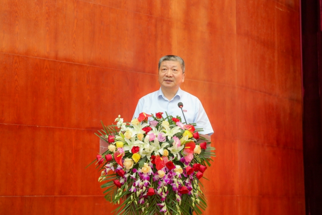 校长吴中向全体教职工致以节日的问候和衷心感谢,向受表彰的先进集体和个人表示热烈祝贺。他指出,强国必先强教,强教必先强师。回顾我校发展历程,从建校到今天,学校始终拥有一支勇于奉献追求卓越的教师队伍,他们共同托起学校平稳运行、师生乐教勤学的校园环境,广大教师以赤子情怀、师者风范、扎实作风潜心教书育人,是学校建设发展的中坚力量。他希望老师们进一步弘扬教育家精神,努力做到胸中存大局,手上有功夫,心中有仁爱,不断推动教师队伍提质发展,躬身融入学校发展大局,与学校共同发展、与教育事业共同成就。