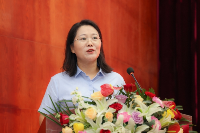 优秀教师代表、会计学院教师张荣静发言。她分享了从教近20年,始终坚守三尺讲台,砥砺育人初心,逐渐感悟坚守教育的意义在于用情感温润情感、用生命点燃生命。致敬广大教师以“捧着一颗心来,不带半根草去”的精神,潜心耕耘,默默奉献,奋斗在助推学校发展的不平凡事业中。她号召大家在今后的工作中继续全面发扬“敢于拼搏、敢于创新、敢于担当”的郑财精神,坚定信心,锐意进取,为郑财的建设、改革、发展作出新的贡献。