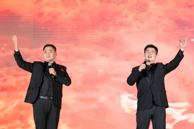 接着,李冬冬与卢小川的男声二重唱《精忠报国》在激昂的旋律和深情的演绎下,瞬间点燃现场氛围,展现出中华民族的英雄气概和浓厚的爱国情怀;电提琴组合带来的《VIVA》则为晚会注入了现代音乐的活力,独特的音乐风格和炫酷的演奏技巧,展示出音乐的无限可能;寇凯丽的女声独唱《幸福中国一起走》和《万疆》深情而有力,用歌声表达出对祖国的热爱和对幸福生活的向往,现场观众连连称赞,掌声阵阵;相声《欢声笑语》以幽默方式为晚会增色,梁栋和王京默契风趣的表演让现场笑声不断,展现出相声艺术作为传统文化的底蕴;雄浑男声独唱《滚滚长江东逝水》致敬经典文化,令人回味无穷。