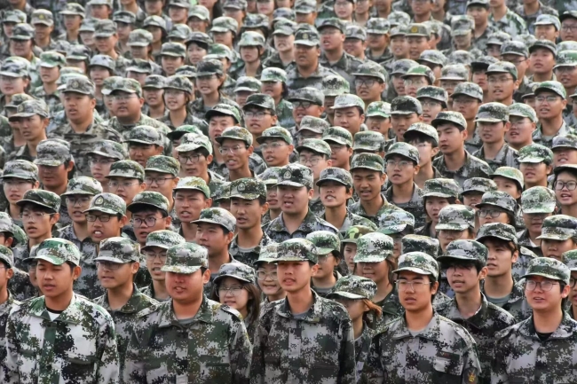 上午8点30分,新生军训成果展示在庄严的国歌声中拉开了序幕。