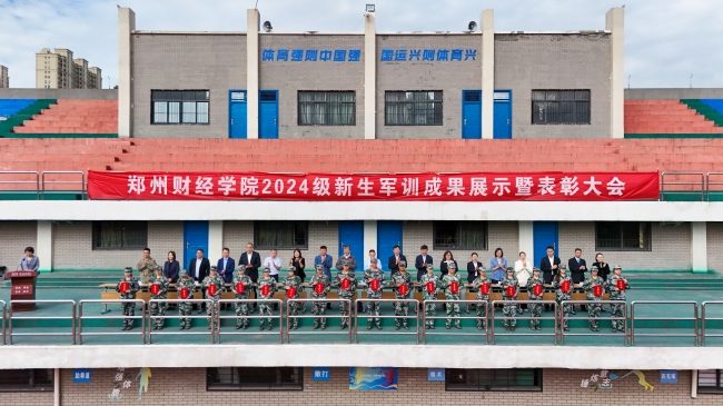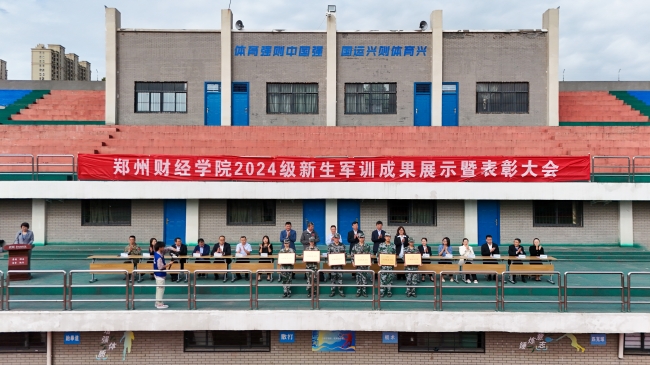 9月21日,郑州财经学院在田径运动场隆重举行2024级新生军训成果展示暨表彰大会。党委书记马治军等校领导班子成员出席大会,各二级学院党总支书记、全体教官及2024级新生参加大会。副校长陈静主持大会。