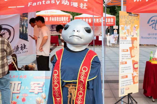 全校78个社团精心策划,在各自的特色展位大显身手。摄影协会为同学们详细介绍日常训练和活动,摆出专业装备,分享拍摄经历;宫商徵羽汉服社成员身穿传统服装,华彩纷呈,为校园带来古典美气息;棋艺社吸引了爱好者现场对弈,在喧闹中独守沉静;书画协会翰墨飘香,继承传统,赓续文脉;各类音乐社团“先声夺人”,古今器乐纷纷登场……群星闪耀,一展风采,与时代同频,向梦想出发,丰富的社团活动与展示让大家走进丰富多彩的校园生活。