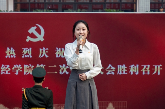 校广播站带来慷慨激昂的《红船》朗诵表演,他们用铿锵有力的声音,生动再现了中国共产党在红船上诞生的历史瞬间,表达了对党的忠诚和对祖国的热爱,饱含着青春的力量和投身建设国家的庄严承诺。
