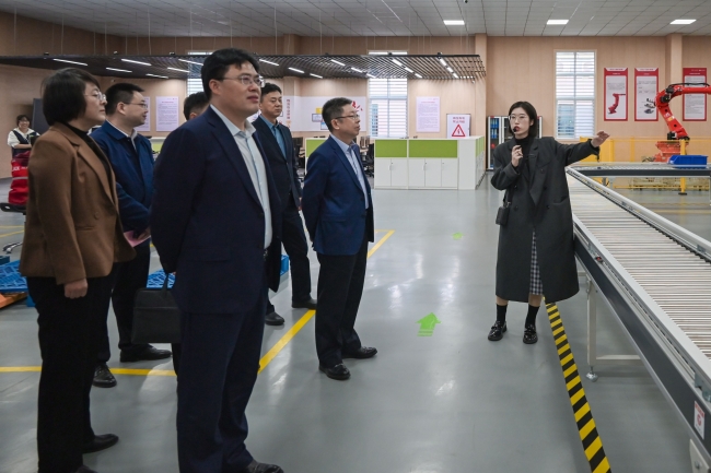 河南省红十字会党组书记、常务副会长秦高亭一行参观我校京东智慧物流实训基地