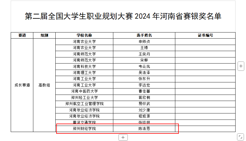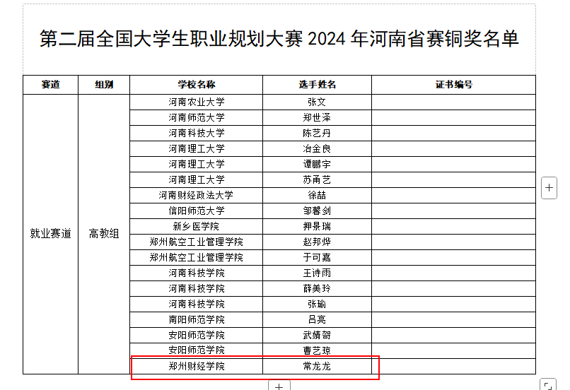 3月15日,由河南省教育厅主办的第二届全国大学生职业规划大赛河南省总决赛在郑州师范学院圆满落下帷幕,我校两位学子在此次大赛中取得奖项,信息工程学院学生陈浩恩在成长赛道中获全省总决赛“银奖”,智能工程学院常龙龙在就业赛道中获全省总决赛“铜奖”。
